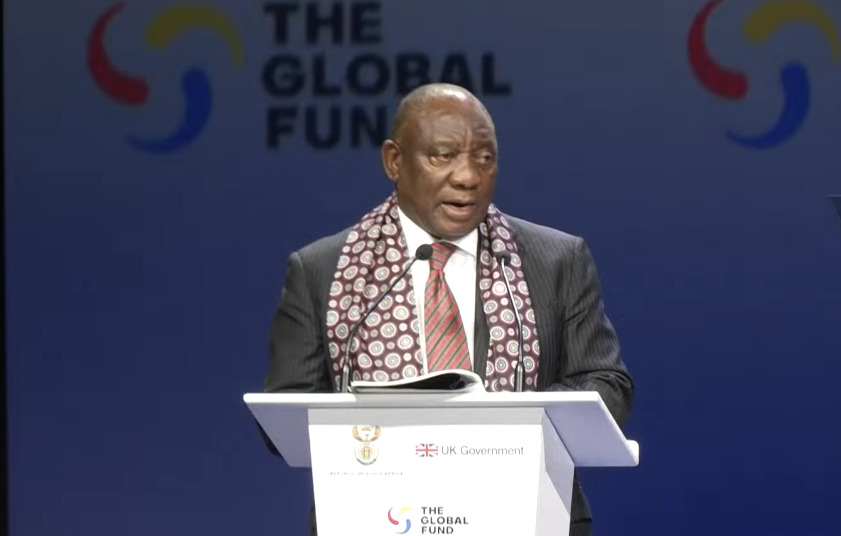 Photo : Cyril Ramaphosa, président d'Afrique du Sud à la reconstitution du Fonds Mondial contre le VIH, la tuberculose et le paludisme. Capture d'écran.