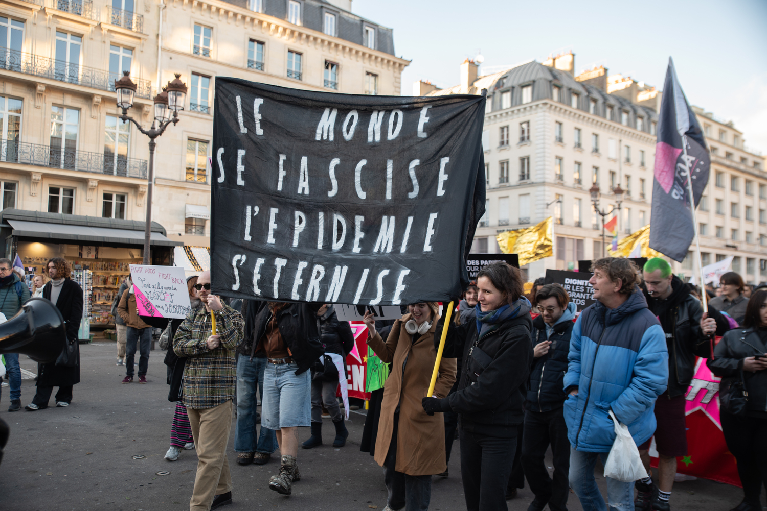 Si l'OMS veut croire que l'espoir subsiste, la résignation semble de mise. A titre d’exemple, hier à peine 200 personnes étaient réunies à Paris pour la traditionnelle marche d’Act Up-Paris à l’occasion du 1er décembre (photo de Une). Sur la banderole de tête il y avait ce slogan : «Le monde se fascise, l’épidémie s’éternise». On ne saurait mieux dire.